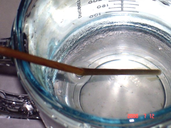 Observar que a vareta retilínea mostra um ângulo na passagem do ar para a água. A diferença entre os índices de refração dos dois meios, ar e água, relacionada com a diferença de velocidade da luz nos dois meios provoca esse desvio.
