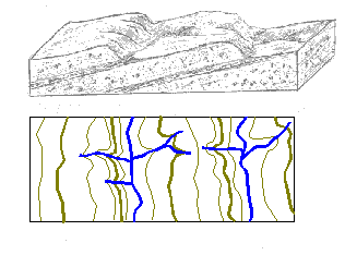 Forma de relevo assimétrico, muito comum em sequências de camadas sedimentares com mergulho fraco intercalando níveis mais resistentes à erosão do que outros e que controlam, assim, o desenvolvimento geomorfológico com uma topografia plana e de gradiente suave segundo o sentido do mergulho das camadas, contraposta por escarpas no sentido contrário. A drenagem em tais regiões tem um padrão assimétrico característico com riachos, rios,.. obsequentes, consequentes, subsequentes, ressequentes.