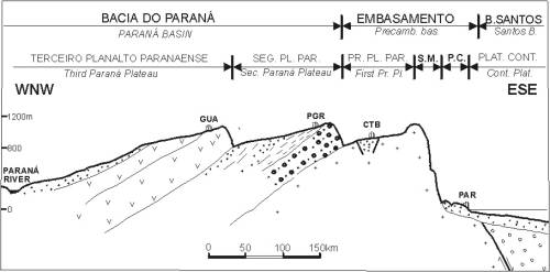 esquemática do Estado do Paraná mostrando a estrutura geológica do relevo. P.C.: